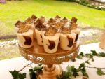 - Decorado con chocolate, cocoa en polvo y detalles dorados